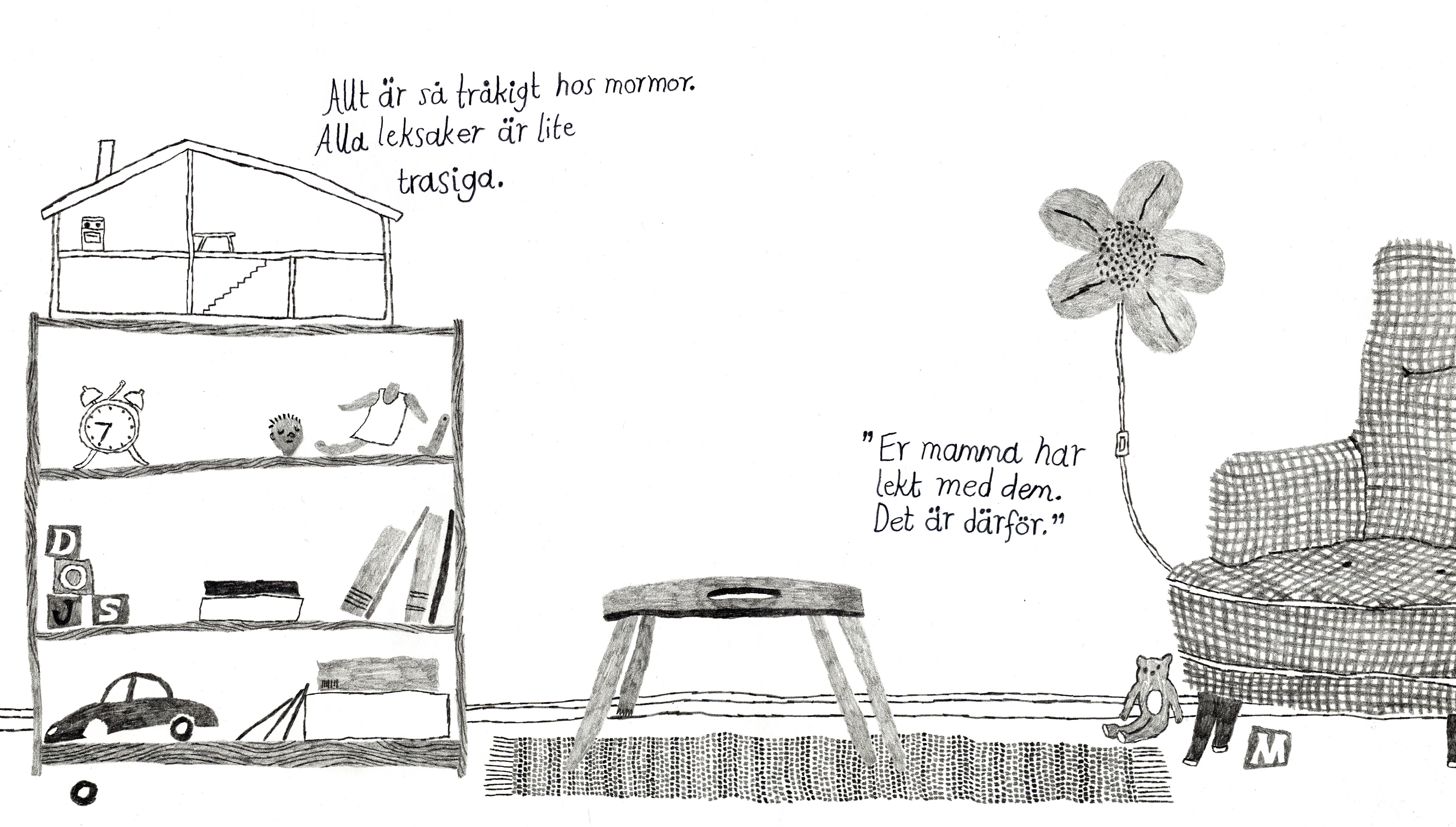 Om barnet som måste sova över hos mormor med sin lillasyster. Men hos mormor är så tråkigt och mormor är så dum.